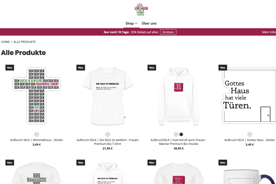 Das Netzwerk „Aufbruch SELK“ bietet ab sofort eigene Kommunikationsartikel wie T-Shirts, Hoodies, Taschen und weitere Produkte mit markanten Aufdrucken an. Der hierfür eingerichtete Shop ist… Weiterlesen »T-Shirts, Taschen & Co. zum „Aufbruch SELK“