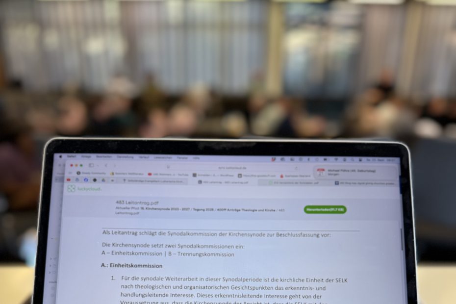 SELK-Synode beschließt Einsetzung von zwei Kommissionen zur Frage der Frauenordination Fulda, 20. September 2025 – Die Kirchensynode der Selbständigen Evangelisch-Lutherischen Kirche (SELK) hat am Samstag… Weiterlesen »Kirchensynode: Einheits- und Trennungskommission beschlossen